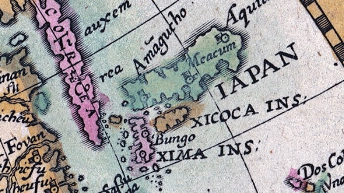 宗麟の積極的な外交や豊後の繁栄の情報は海外に伝わり、16世紀にヨーロッパでつくられた世界地図には、九州はBungo(豊後)という文字で記されています。当時の世界は大分市を通じて日本を知っていた証と言えます。