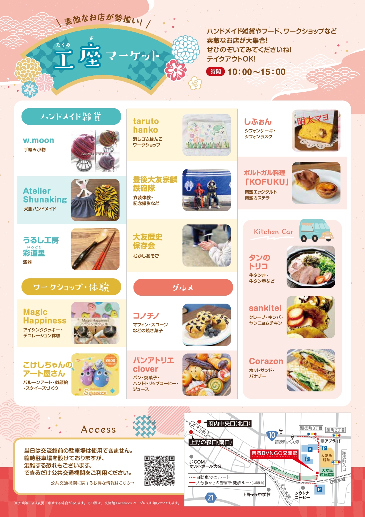 甘酒ふるまい、そうりんピック、なぞときラリー、豊後大友宗麟鉄砲隊による火縄銃演武、グルメ・雑貨コーナーなど、楽しいイベントが盛りだくさんです。