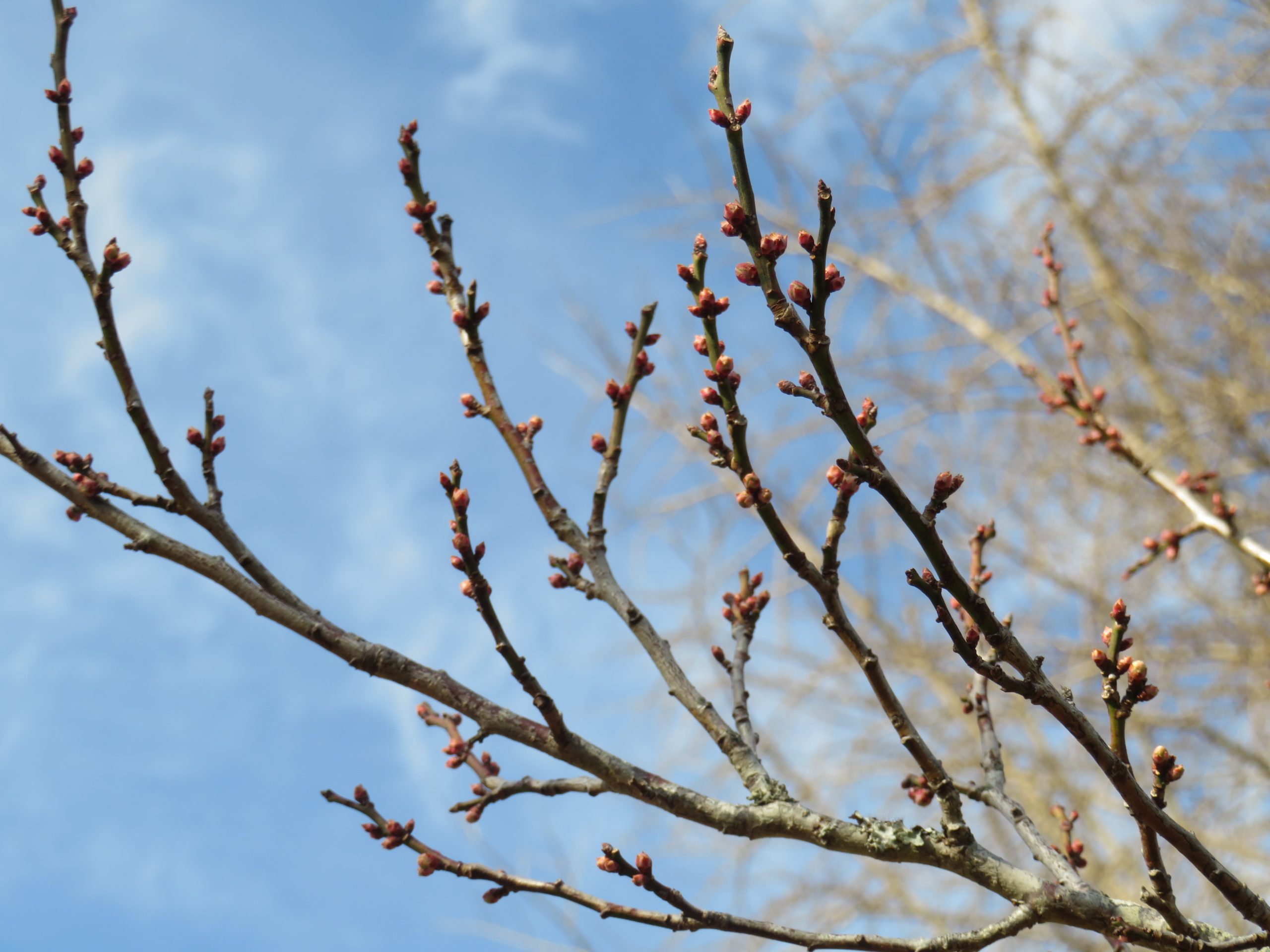 1月28日時点、0分咲き。咲き始めた枝もあります。
