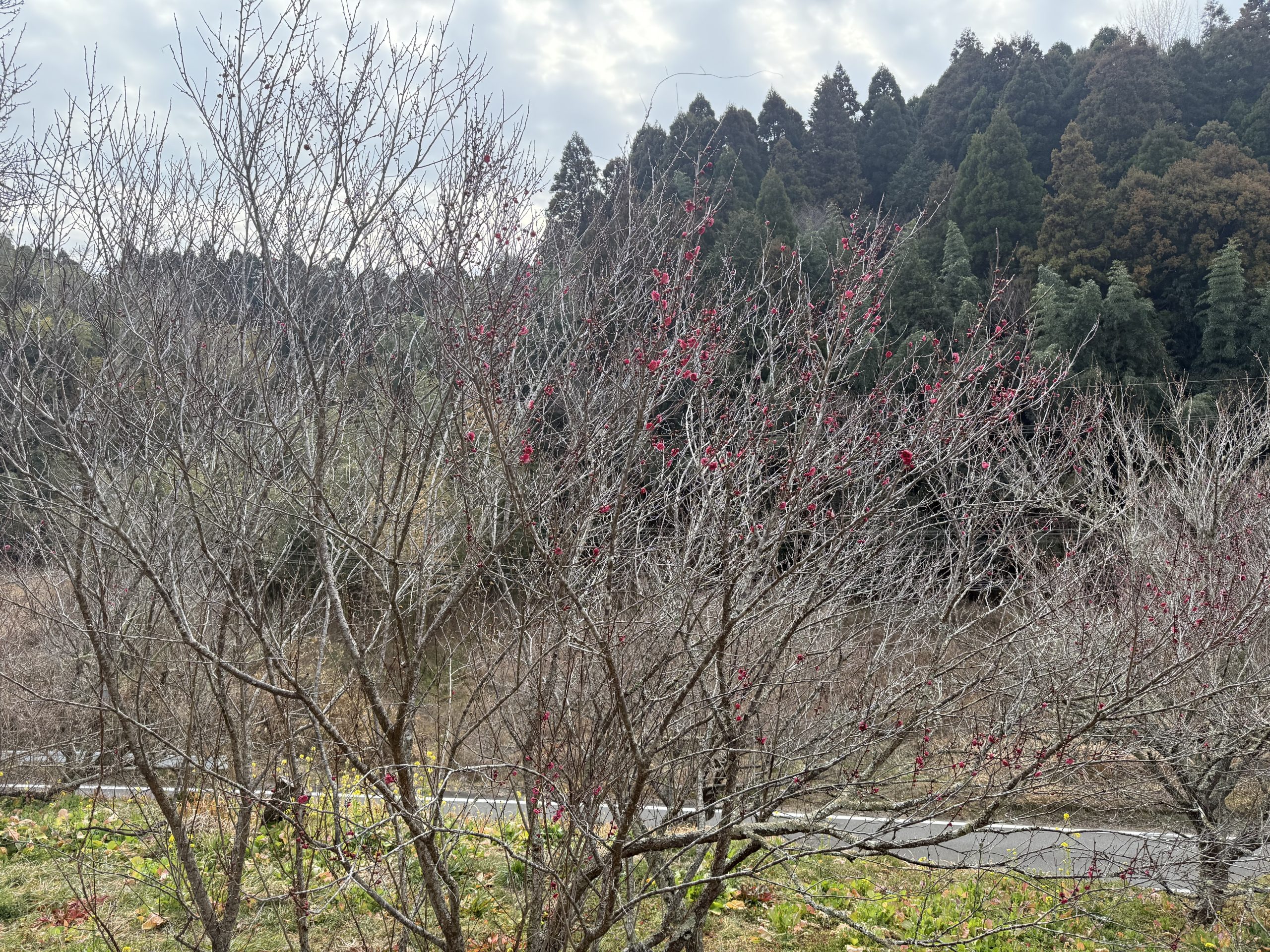 2月6日時点、3.5分咲き。見頃を迎えている梅の木もあります。